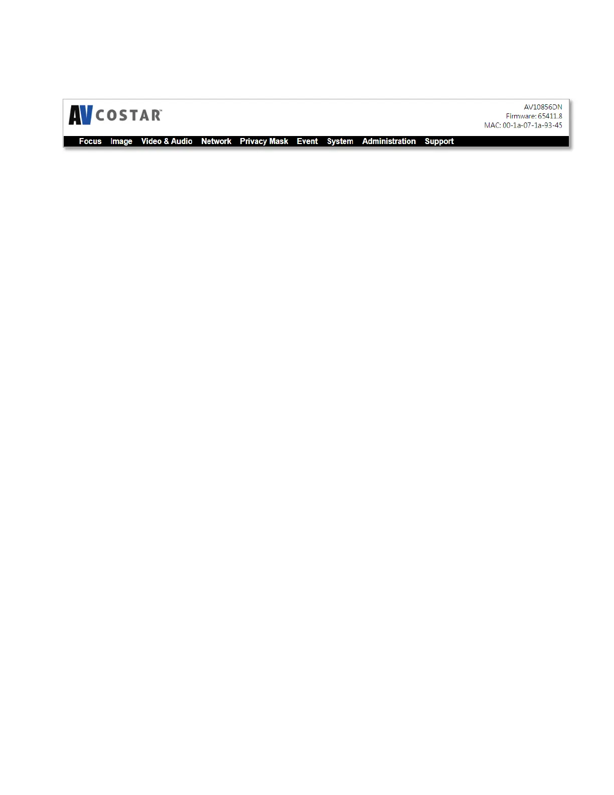 The following camera settings are available on the top of the menu in the web interface, and the user will be