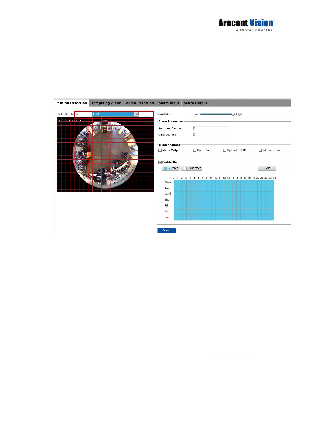 6. Set actions to be triggered by motion detection alarm and the plan. For the detailed