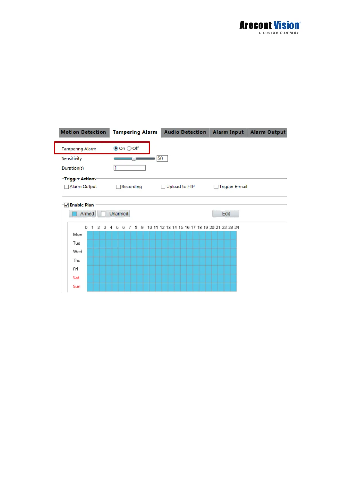 4. Set actions to be triggered by tampering alarms and the plan. For the detailed steps,
