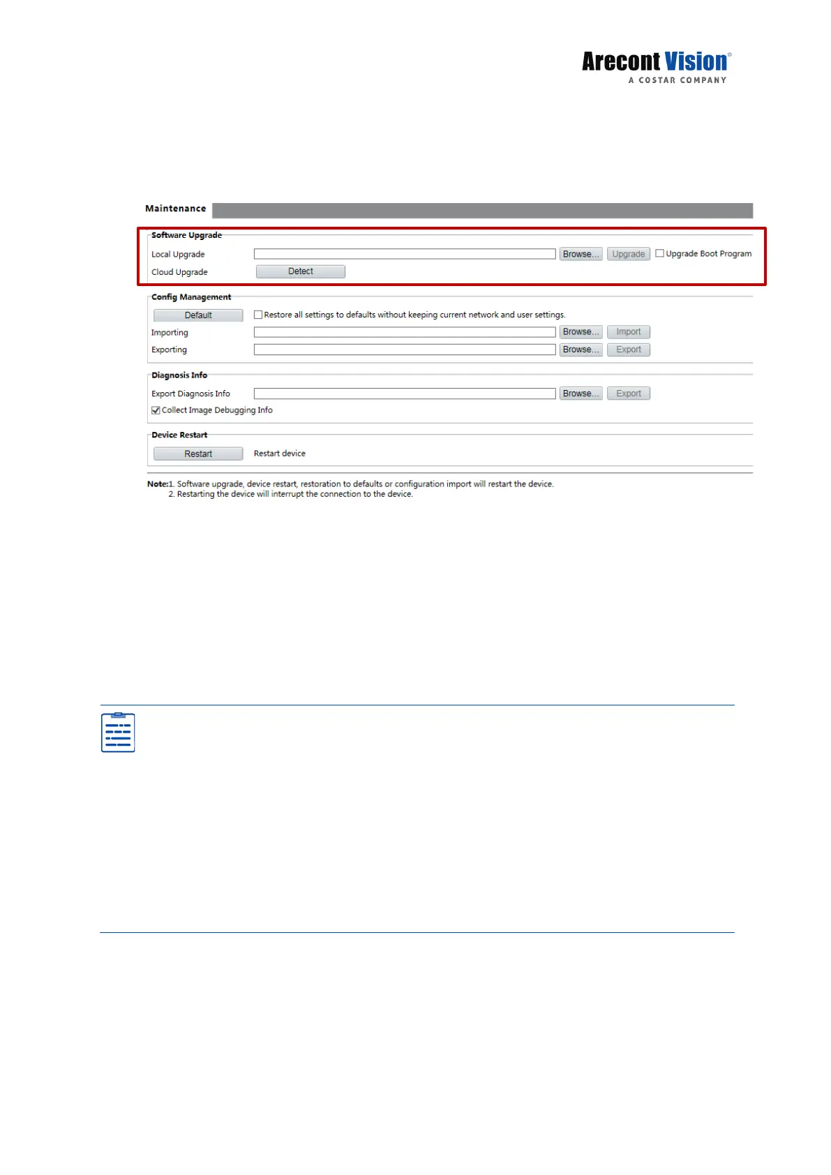 Ensure that the power supply is normal during upgrade. The device will restart