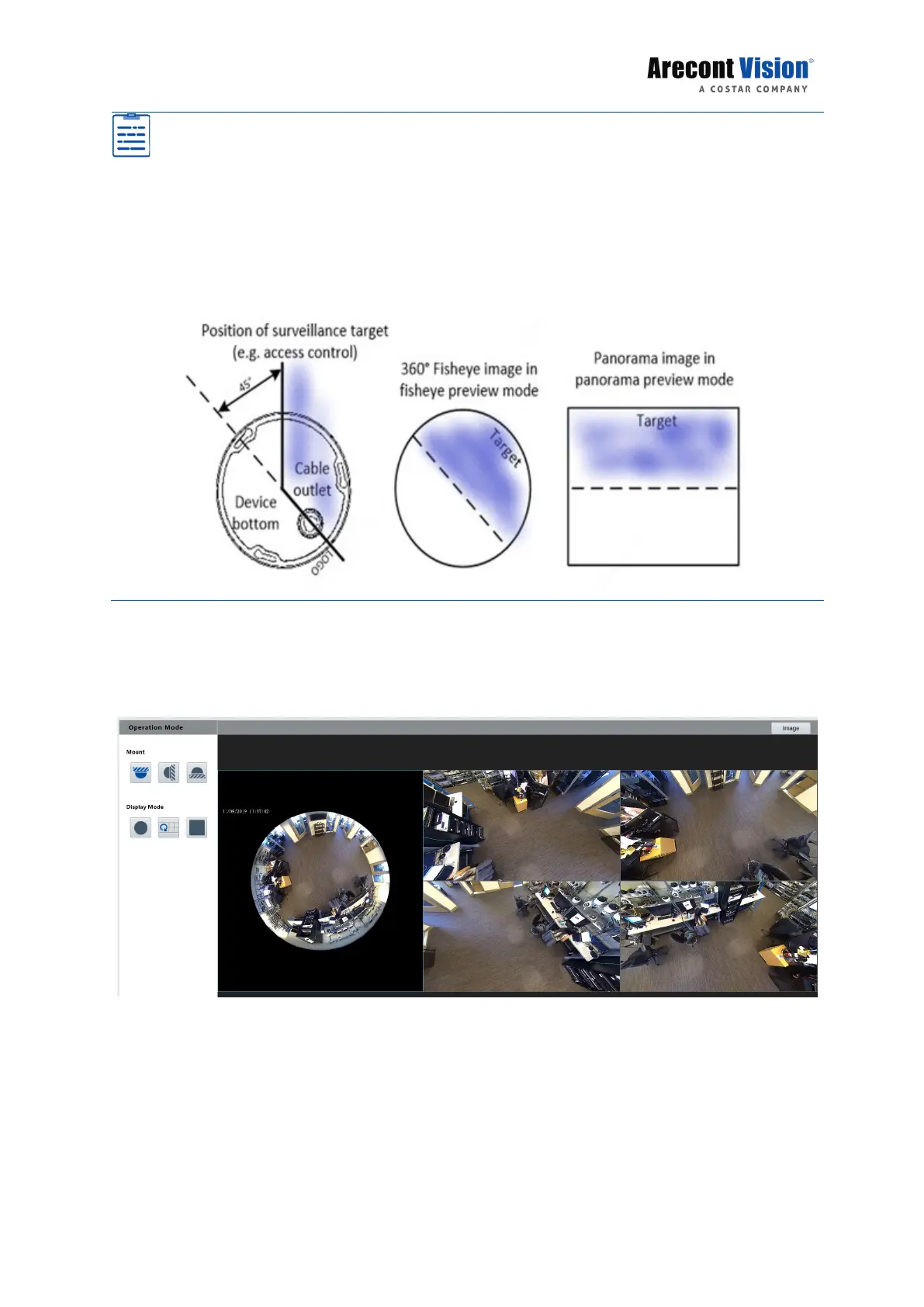 If the ceiling mount or desktop mount is adopted, the panorama image (two 180°