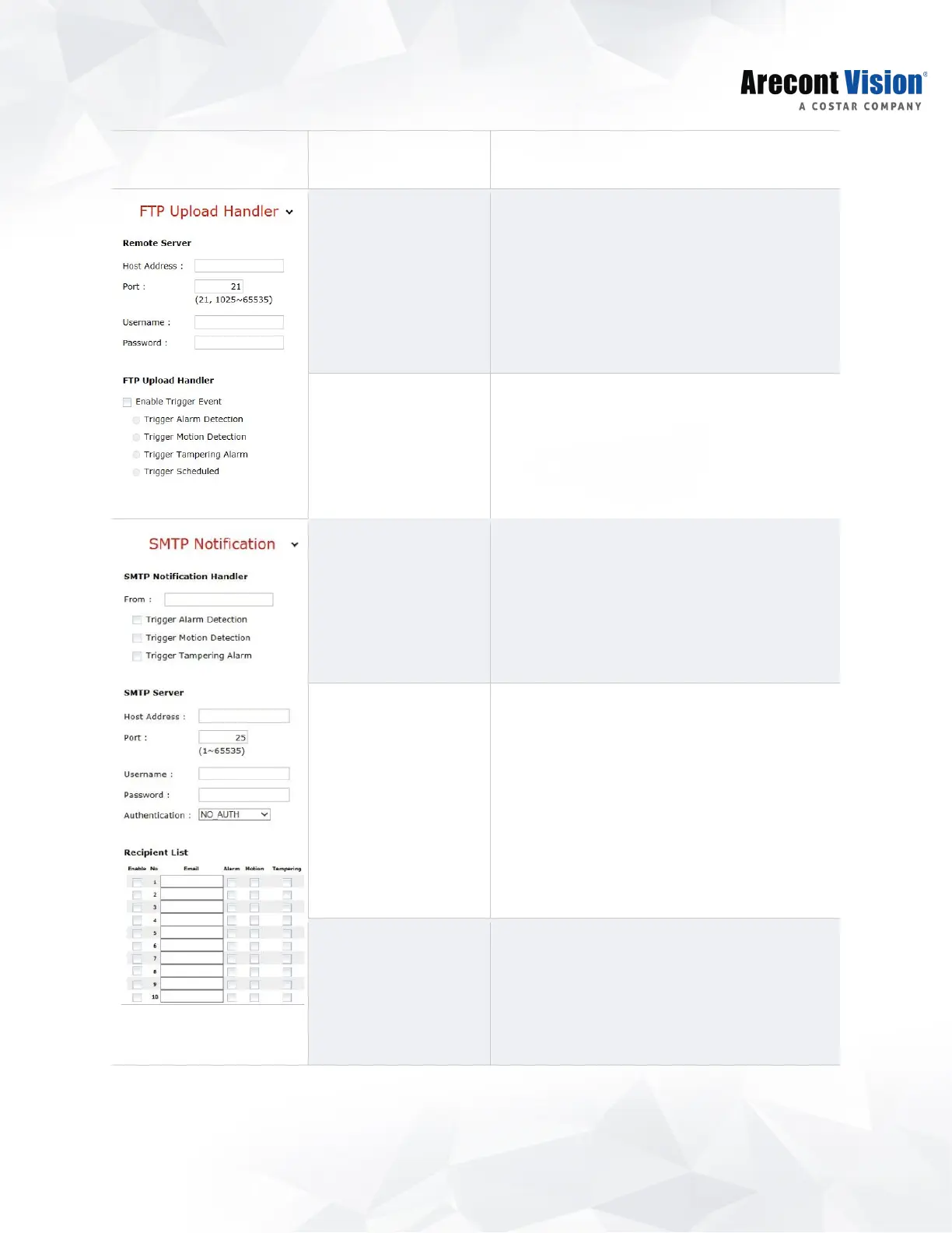Trigger Alarm Detection, Trigger Motion Detection, and