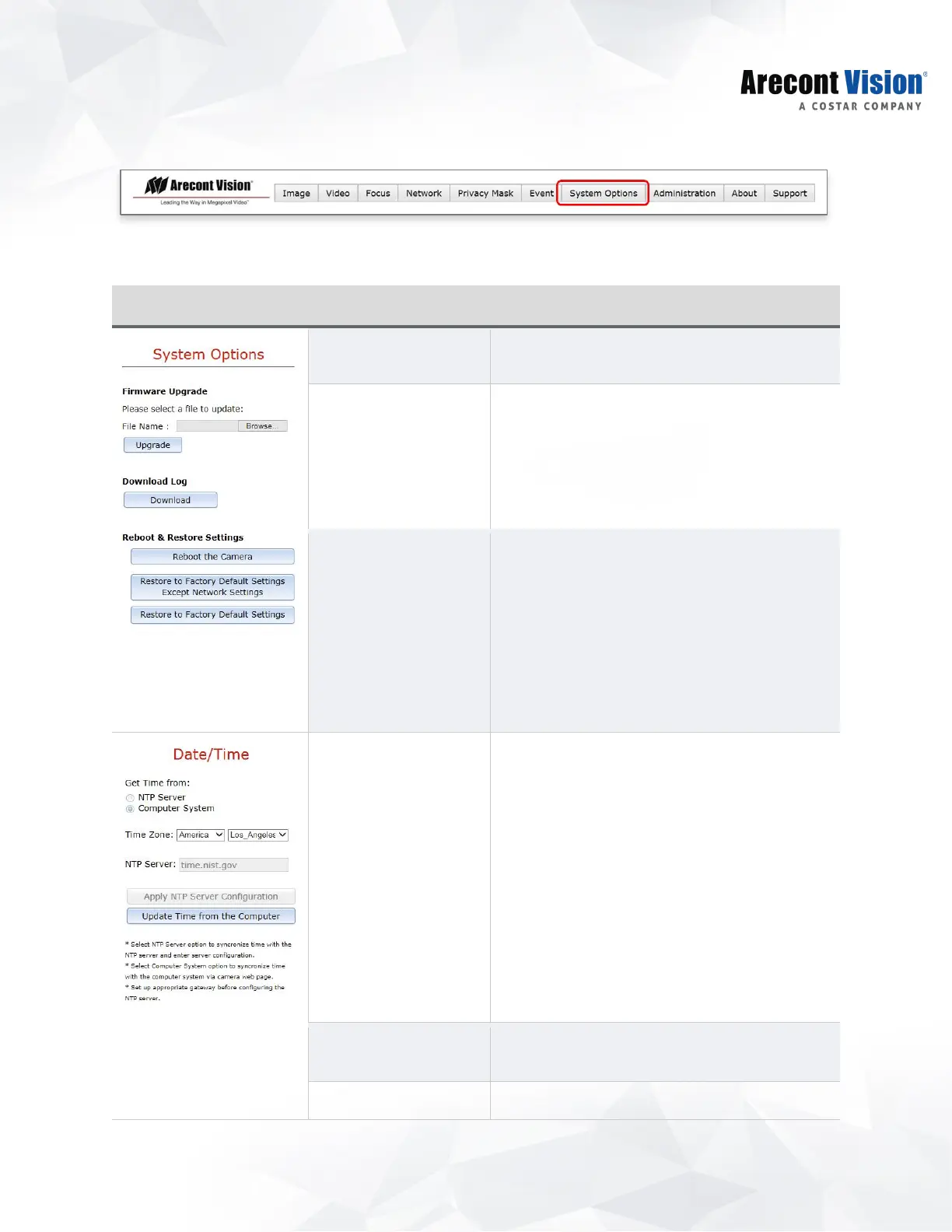 contact with Arecont Vision technical support team.