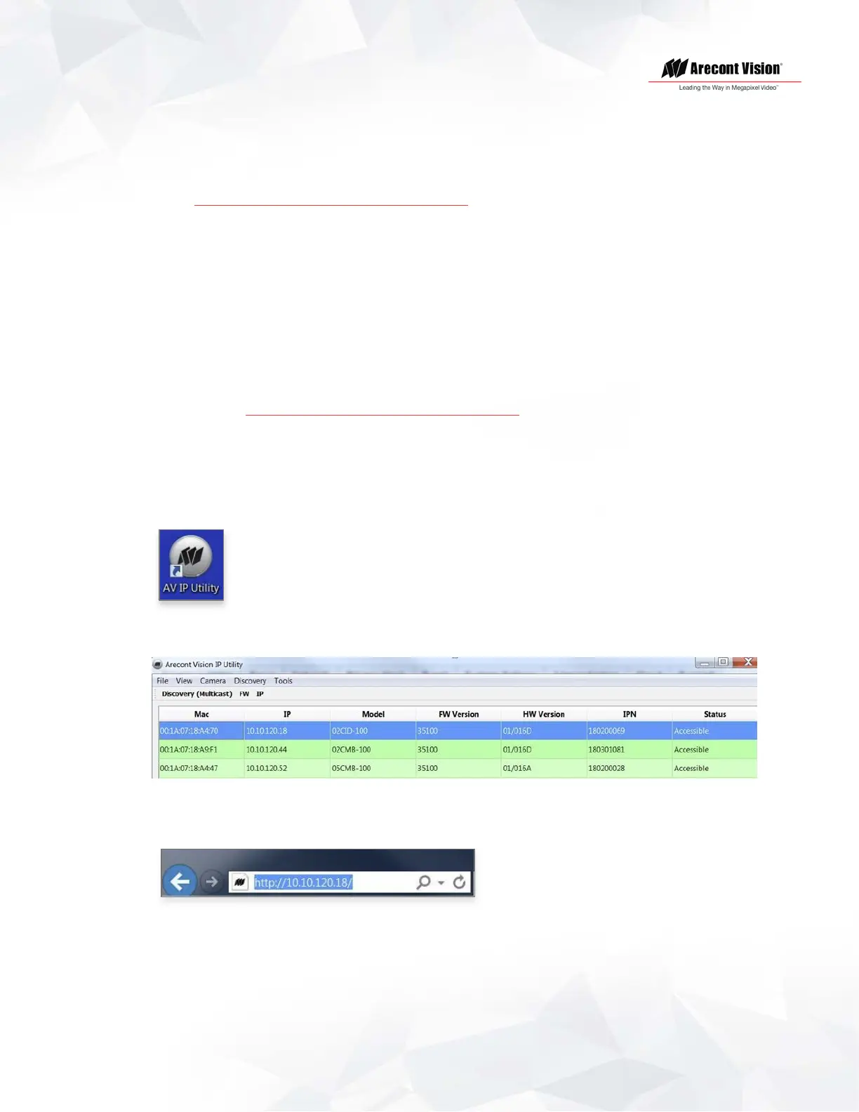 For camera discovery and setup, the AV IP Utility is recommended. The software can be found at Arecont
