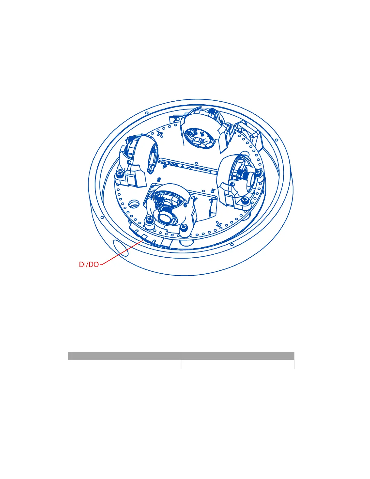 Connect the Alarm In (DI) connector to the alarm input sensor, and then connect the Alarm Out (DO)