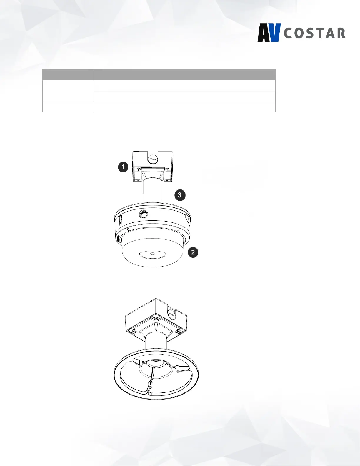 1 Pendant mount (AV-PMJB-W) with an integrated junction box