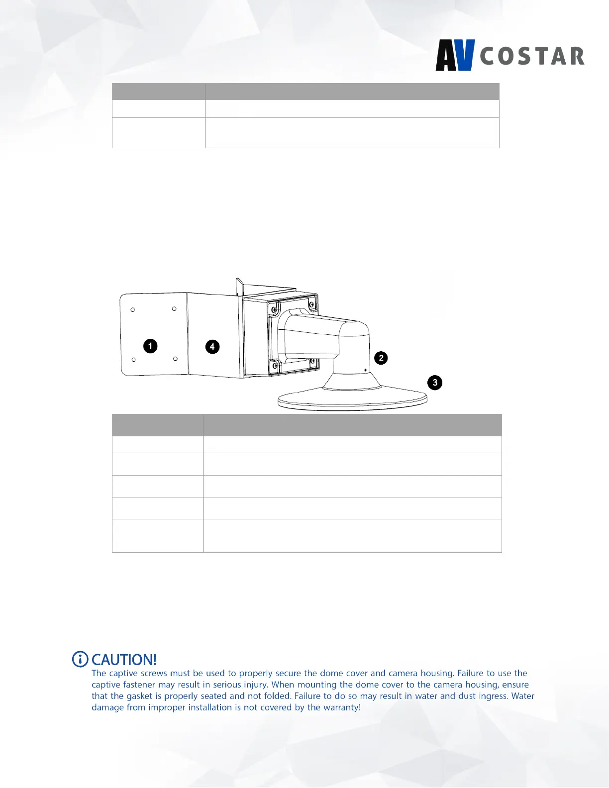 supplied, then pass through the Junction Box Adapter and AV-WMJB-W, Wall Mount Adapter.