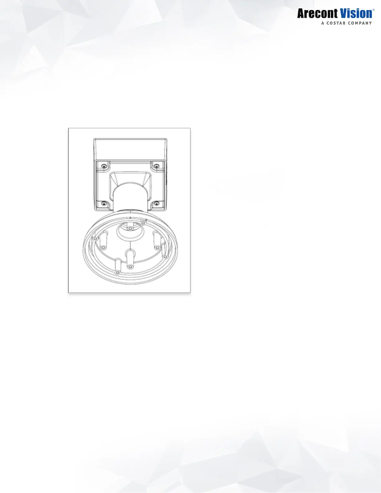 1. Using the Mounting template, prepare the mounting provisions for the camera installation.