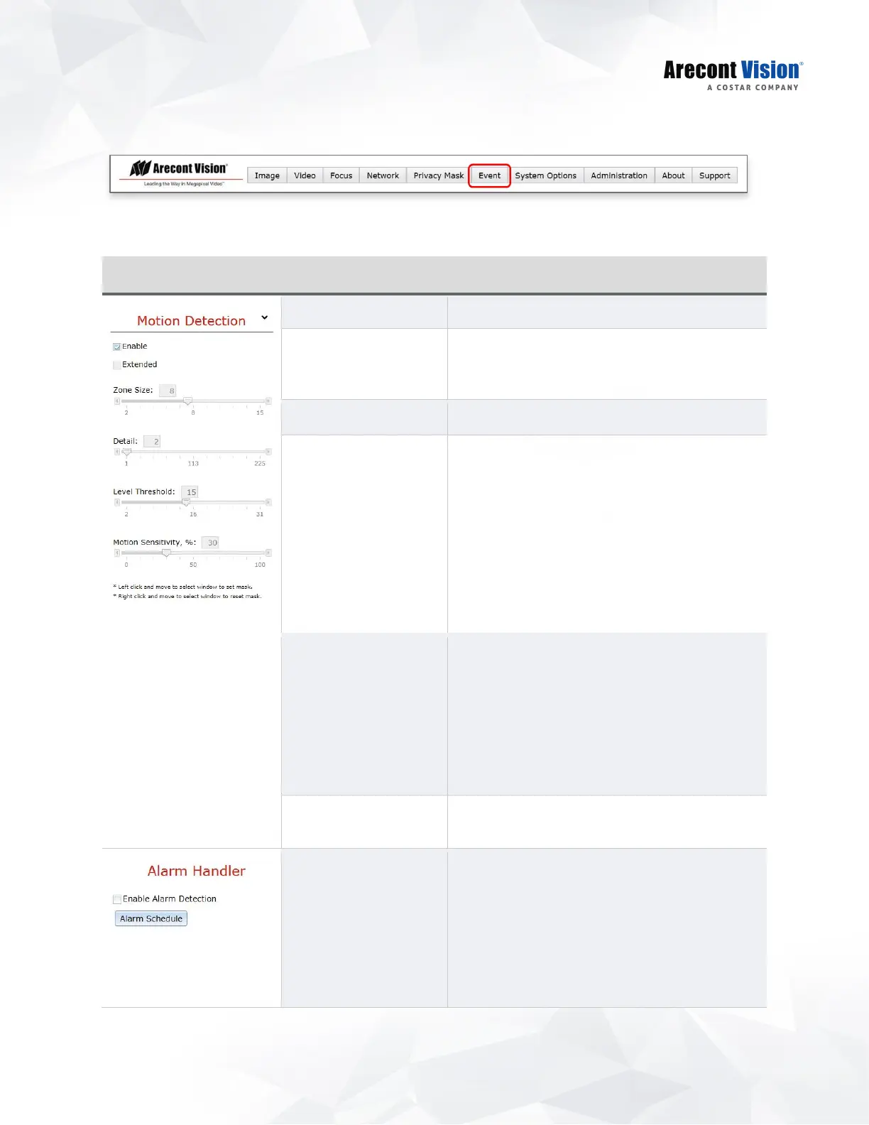Zone Size Adjusts the size of motion detection zones.
