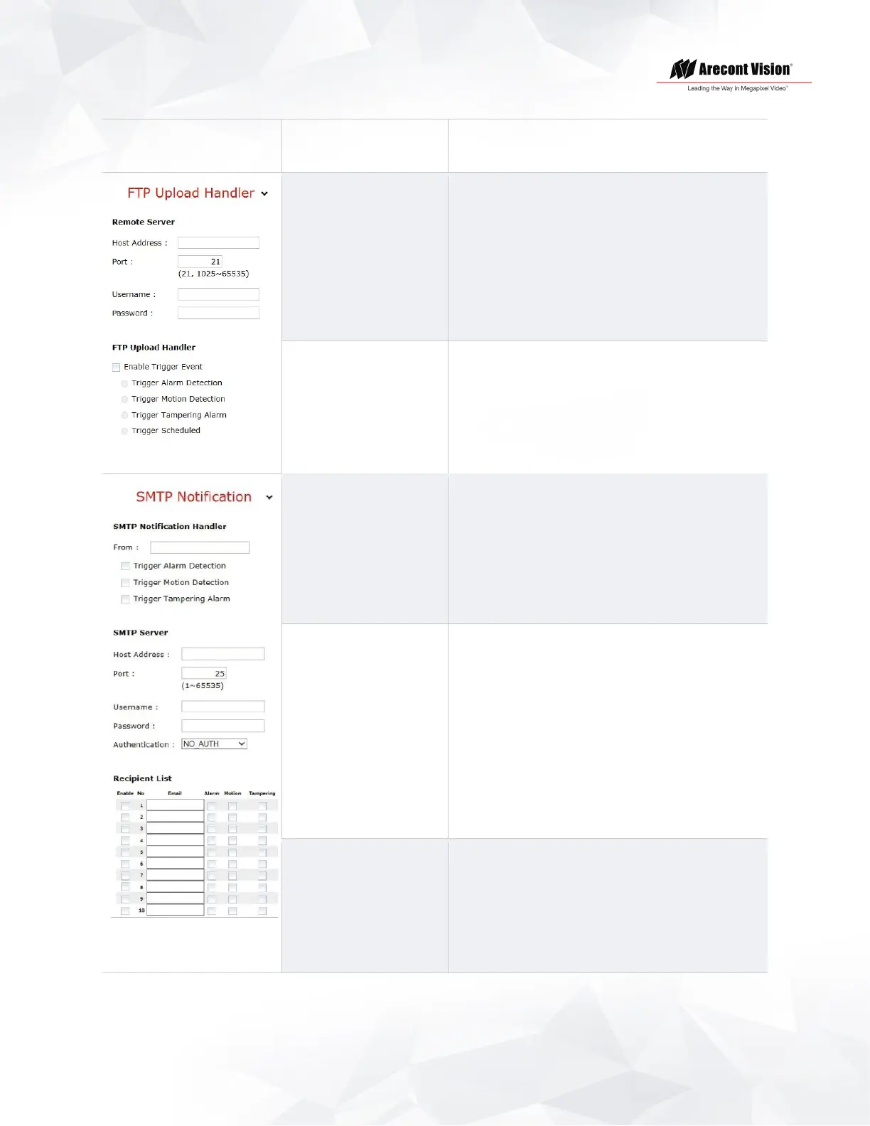 Trigger Alarm Detection, Trigger Motion Detection, and