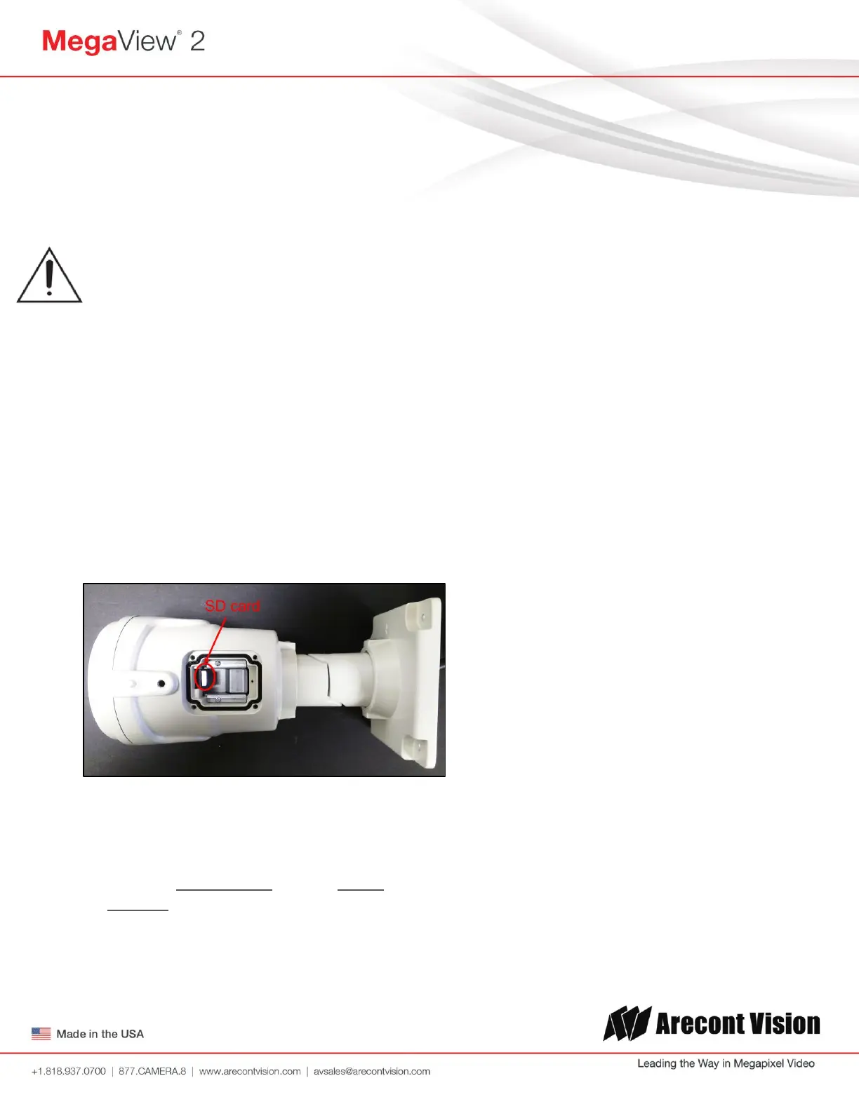 Arecont Vision highly recommends using SanDisk Extreme Micro SD cards (or an equivalent substitute) as