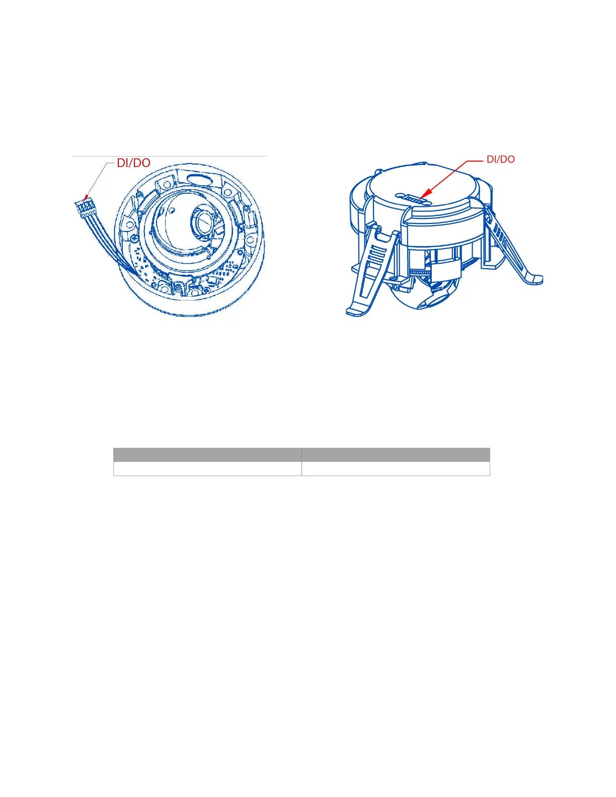 Connect the Alarm In (DI) connector to the alarm input sensor, and then connect the Alarm Out (DO)