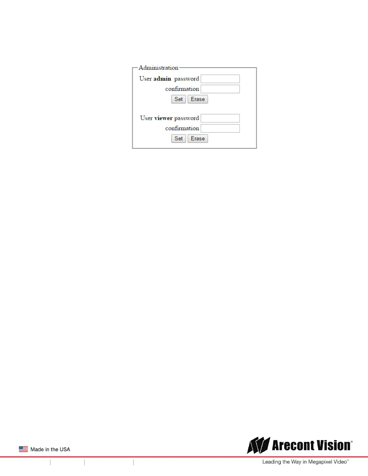 Administration is the place to set a password. Arecont Vision cameras support two levels of