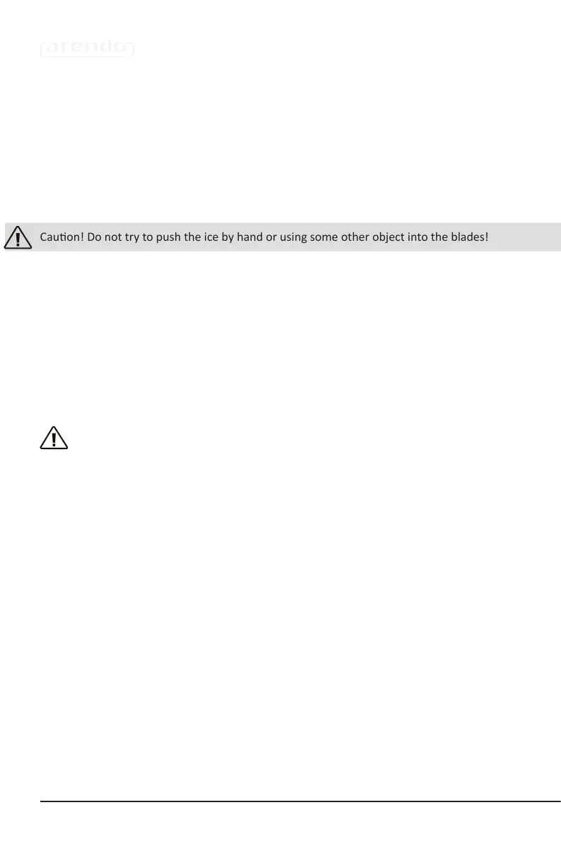 Cauon! Do not try to push the ice by hand or using some other object into the blades!