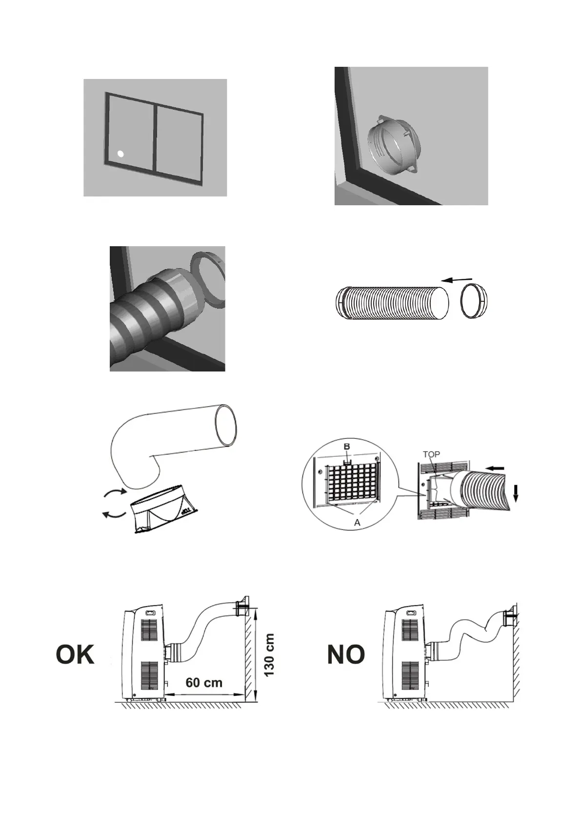 7. The outlet must be between 40 cm and 130 cm above the ground. Avoid tight curves or bends in the flexible hose.