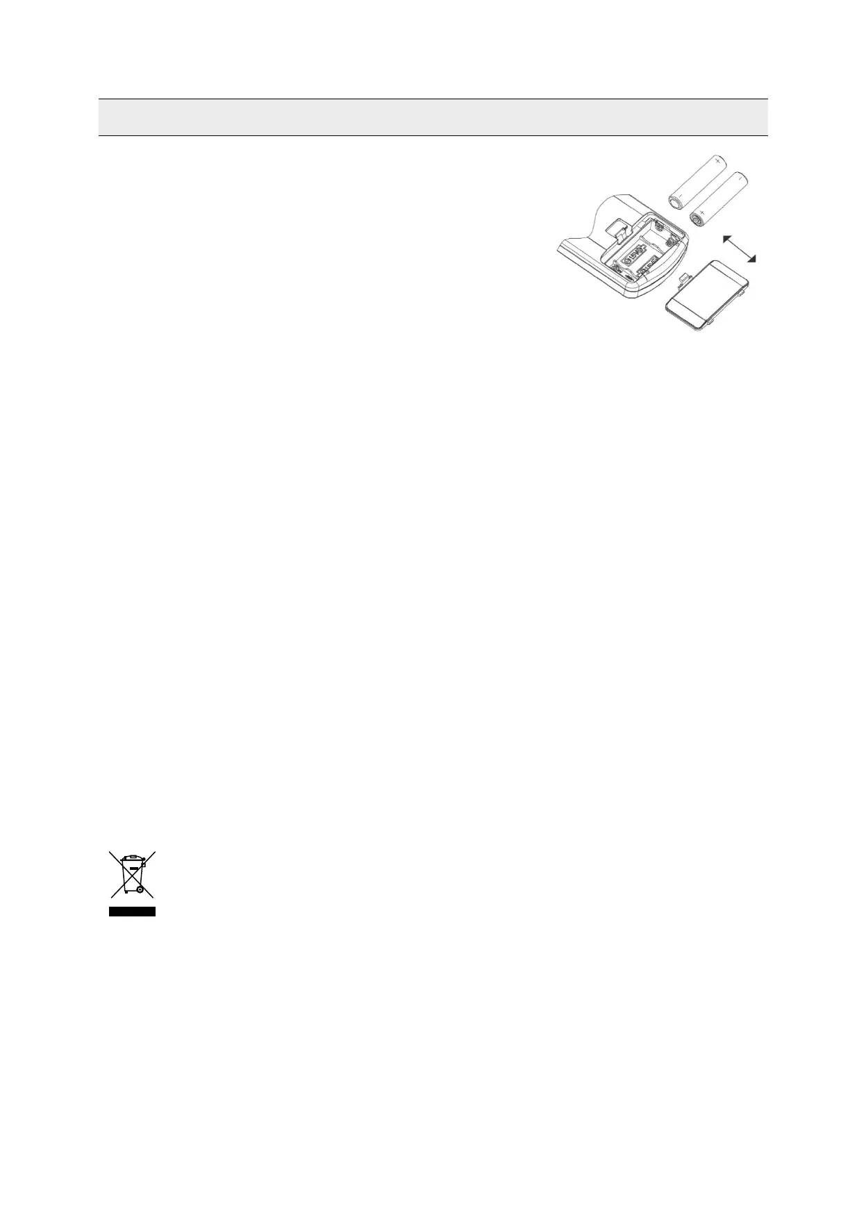 2. Insert alkaline batteries (type AAA, LR03/1.5 V) compliant with Battery