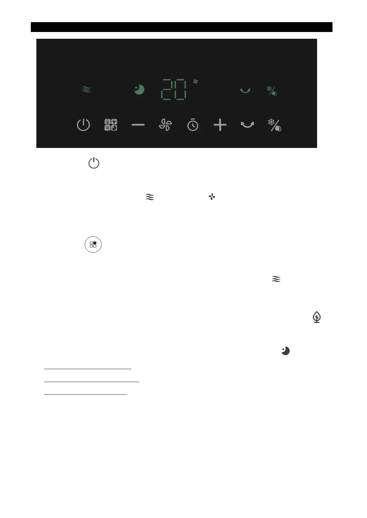 Press this button to select the desired operating mode in the following sequence: Normal -> Natural -> Sleep