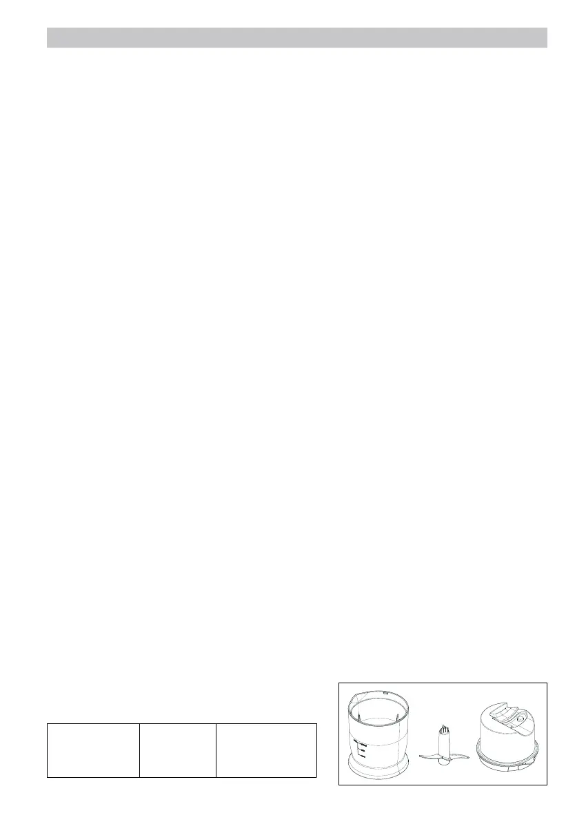 60 Sekunden (bei Stufe „Turbo“) ununterbrochen in Betrieb bleibt. Sollte die Zubereitung mehr Zeit