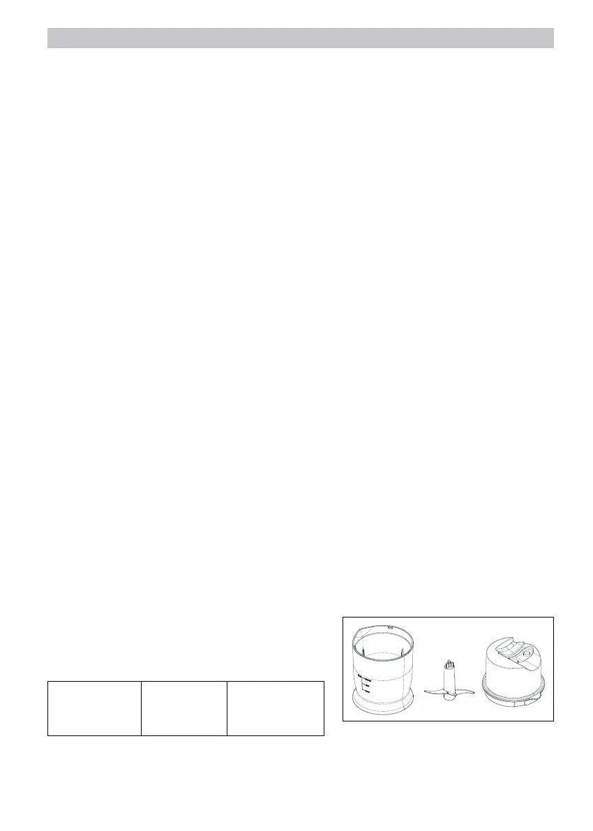- Stek de gardes in het midden van het mengsel dat bewerkt moet worden en zet het apparaat aan.