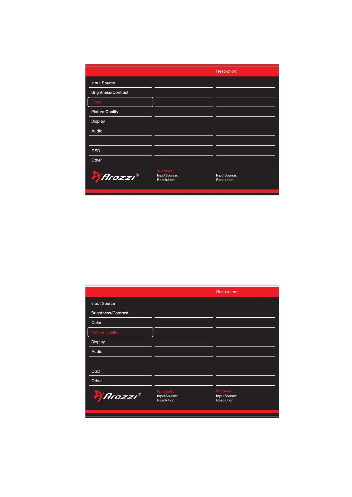 Picture Mode ............ Change the Picture Mode to: Standard, Photo, Movie, Game, FPS, RTS.
