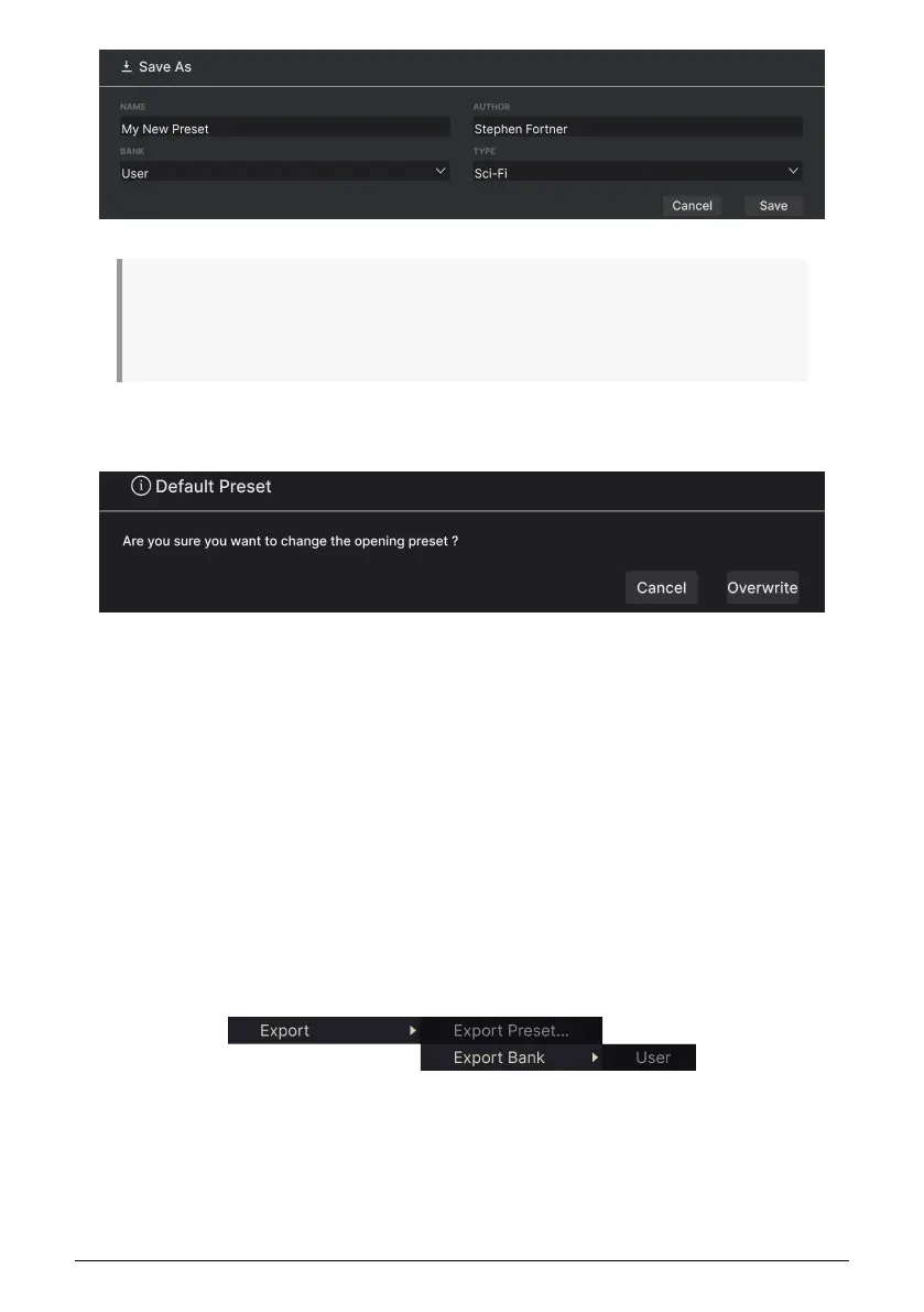 • Export Bank: This option exports an entire Bank of Presets, which is useful for