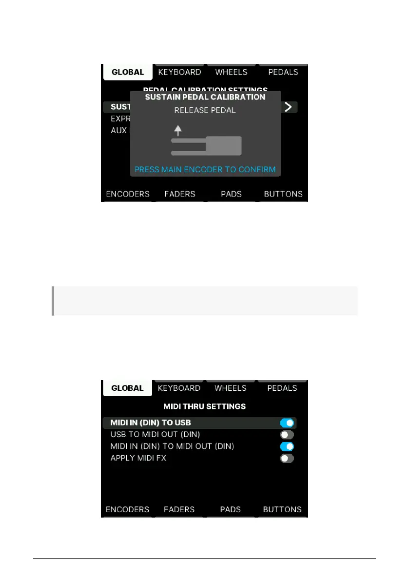 • Sustain Pedal Calibration: If your sustain or on/off type pedal behaves
