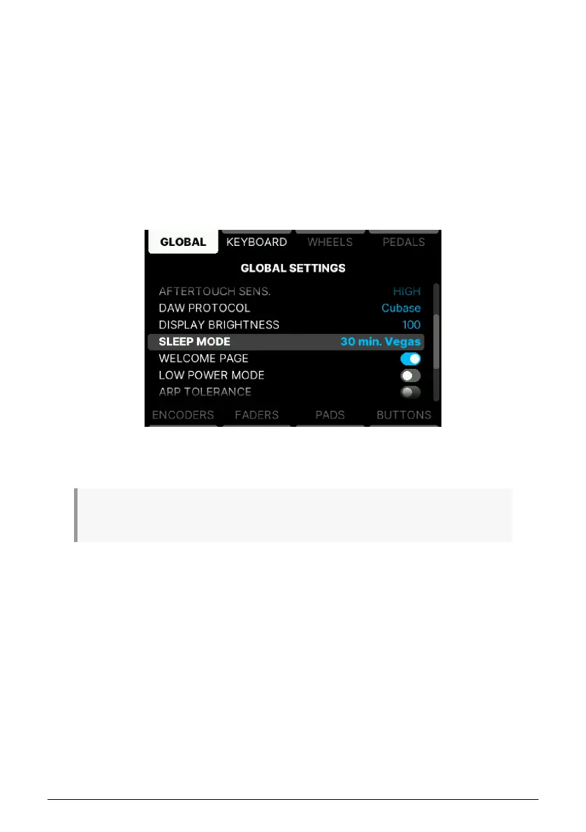 If left idle, KeyLab mk3 will go into sleep mode, similar to a computer screensaver. All