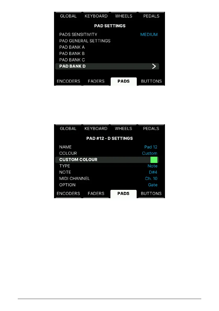 • Colour: Press here to select a global color for this Bank. Press again to confirm.