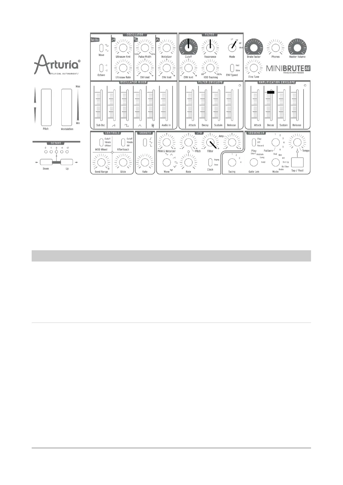 Bekijk gratis de handleiding van Arturia MiniBrute SE, stel vragen en lees de antwoorden op veelvoorkomende problemen, of gebruik onze assistent om sneller informatie in de handleiding te vinden of uitleg te krijgen over specifieke functies.