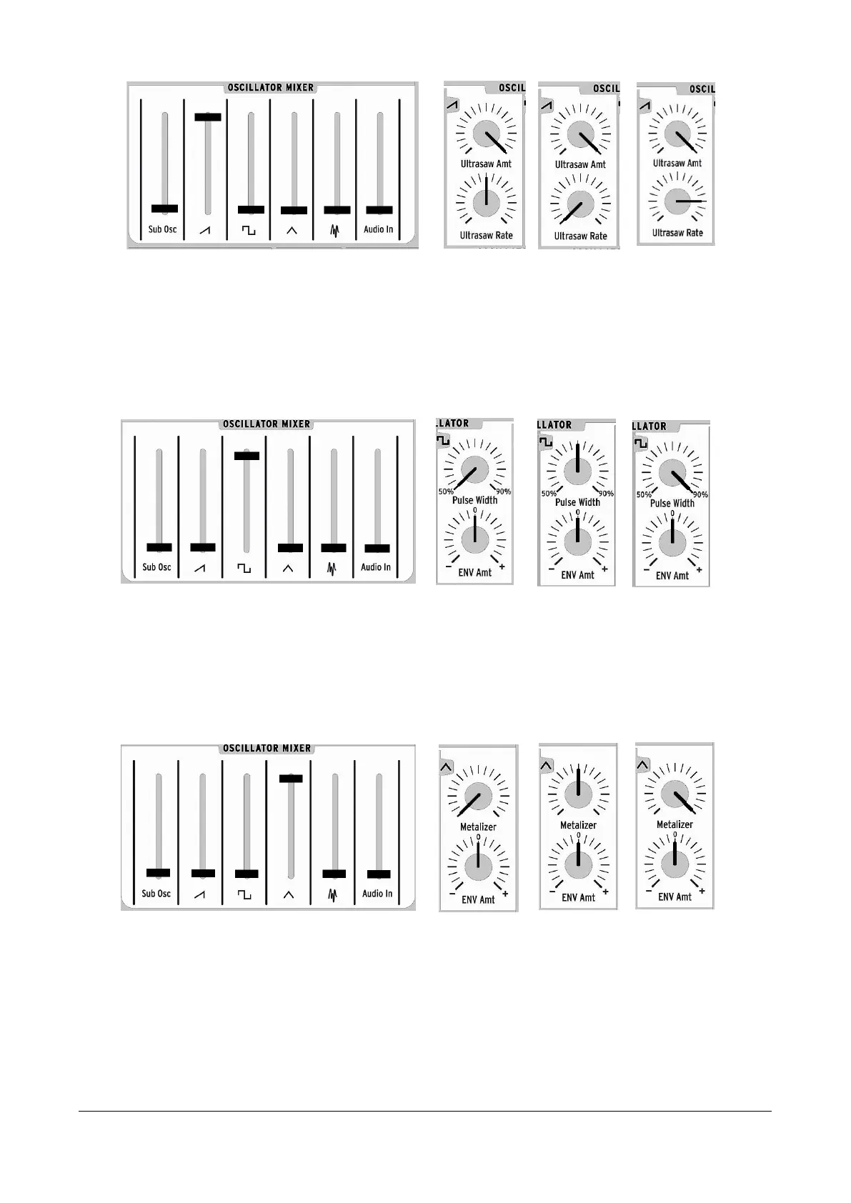 and you’ll hear a hollow, clarinet-like sound. Now turn the Pulse Width knob