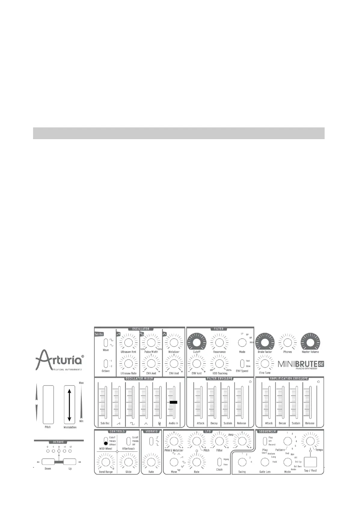Bekijk gratis de handleiding van Arturia MiniBrute SE, stel vragen en lees de antwoorden op veelvoorkomende problemen, of gebruik onze assistent om sneller informatie in de handleiding te vinden of uitleg te krijgen over specifieke functies.