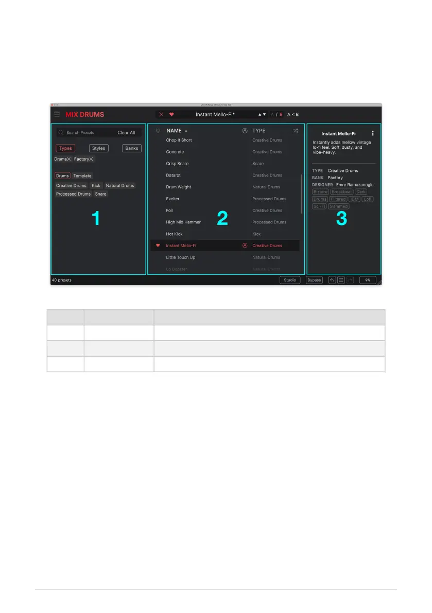 Arturia - User Manual Mix DRUMS - Working with Presets 20