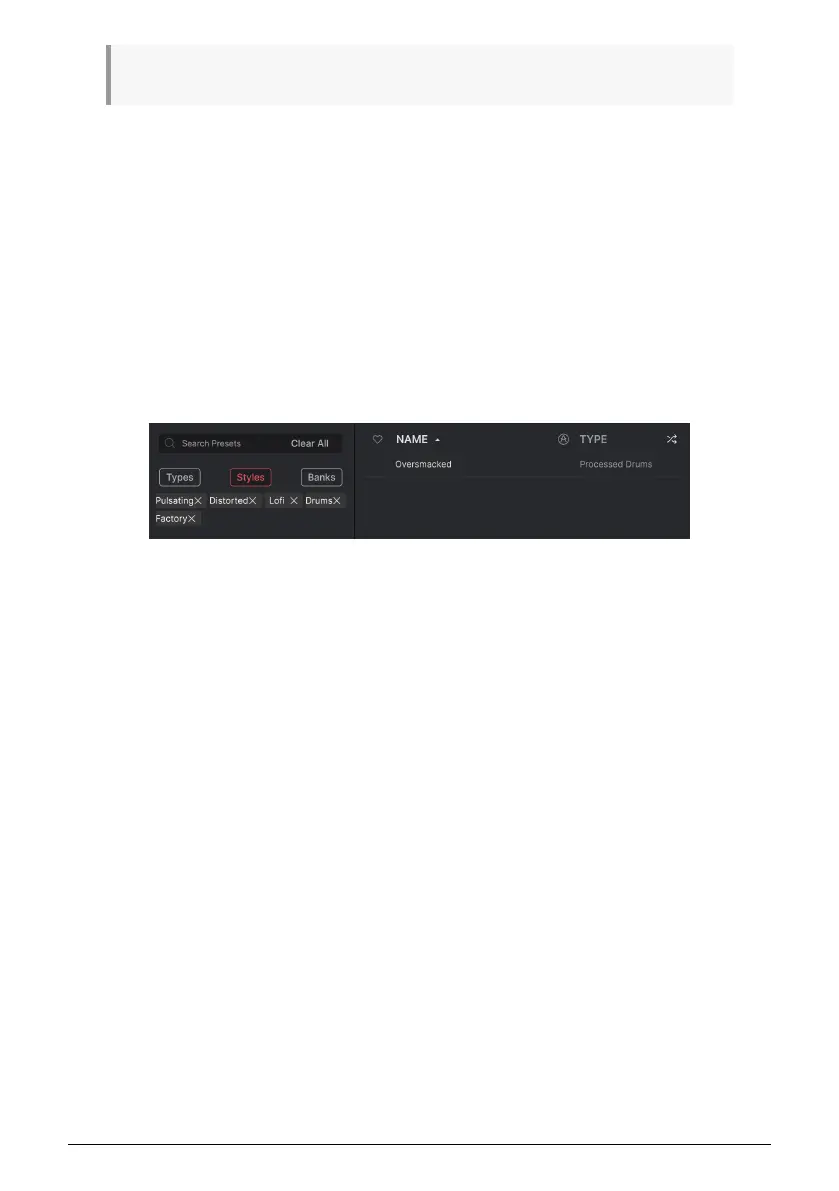 The central area of the browser shows search results, or simply a list of all Presets in the