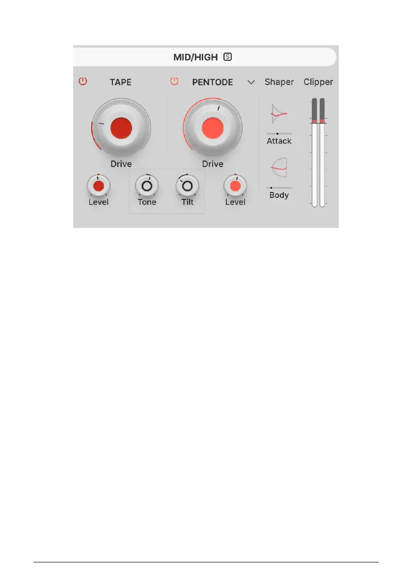 • Level: The amount of makeup gain applied after the Tape drive stage. Settings