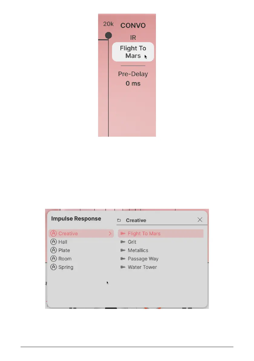 The Convolution Reverb has a selection of 25 Impulse Responses, selectable from a