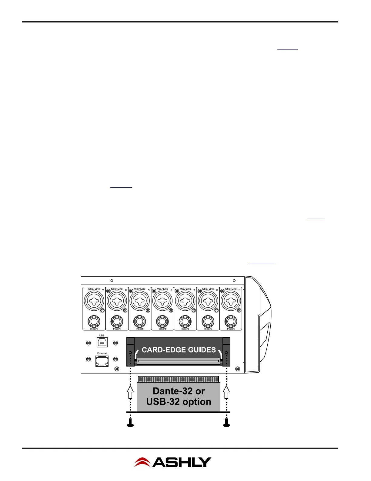 Ashly offers optional eld installable Dante-32 or multi-track USB-32 audio modules for the