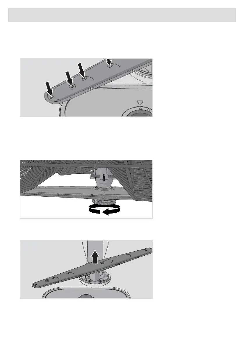 To facilitate cleaning you can remove the spray arms. Remember to fit them firmly back into place