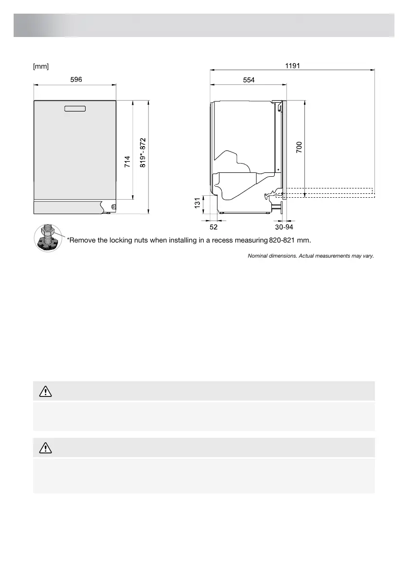 *Remove the locking nuts when installing in a recess measuring 820-821 mm.