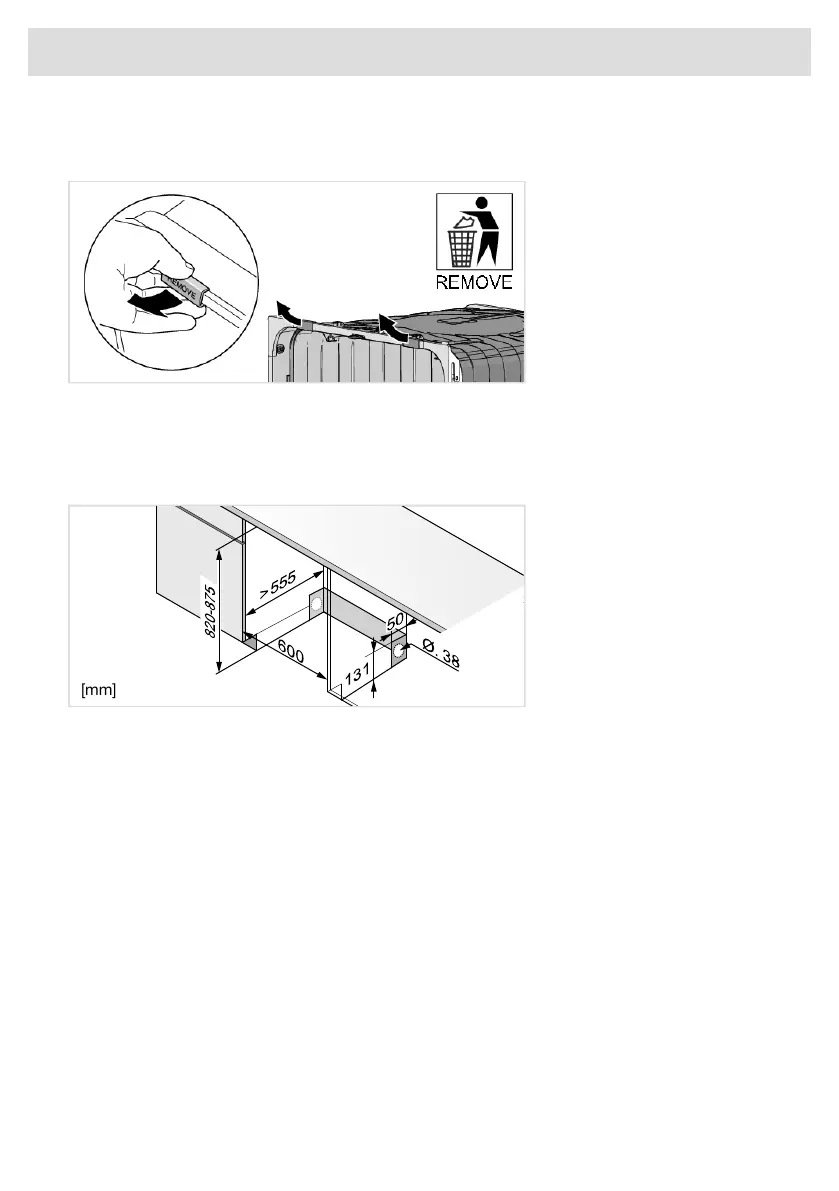 Do not forget to remove the transport protection for the door when unpacking the dishwasher.