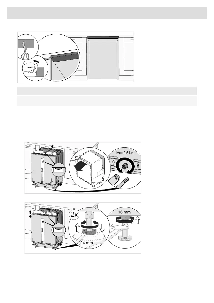 dishwasher. Turn clockwise to lower or anticlockwise to raise.