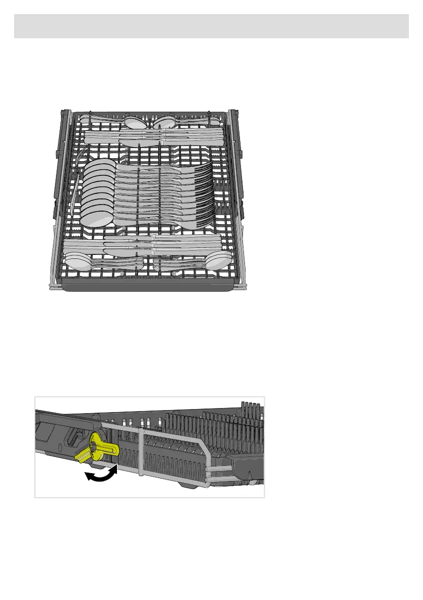 Avoid placing tall objects in the top cutlery tray. They can block the top spray arm.