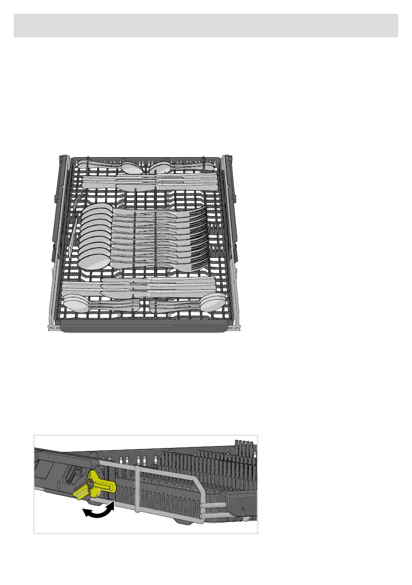 Avoid placing tall objects in the top cutlery tray. They can block the top spray arm.