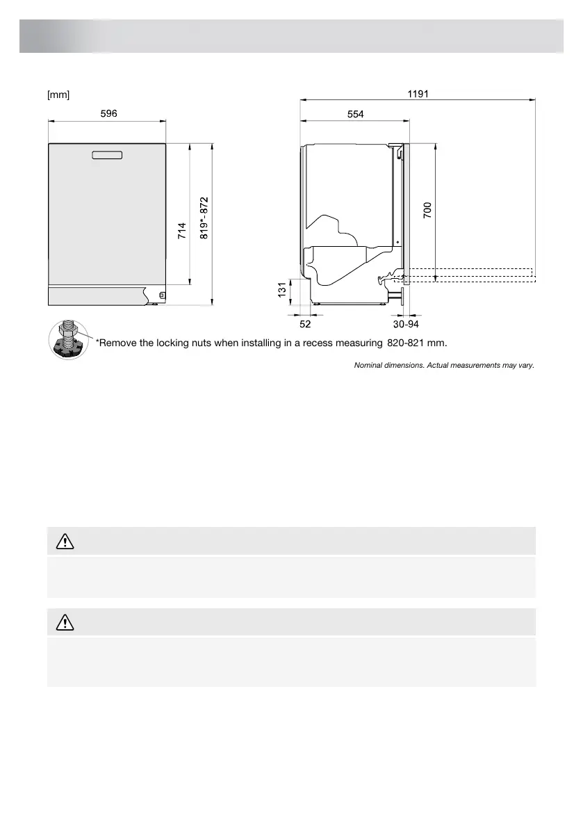 *Remove the locking nuts when installing in a recess measuring 820-821 mm.