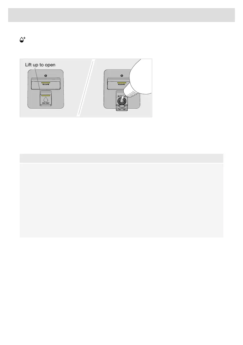 Fill the automatic dosing compartment with dishwasher detergent gel if you have activated the Auto