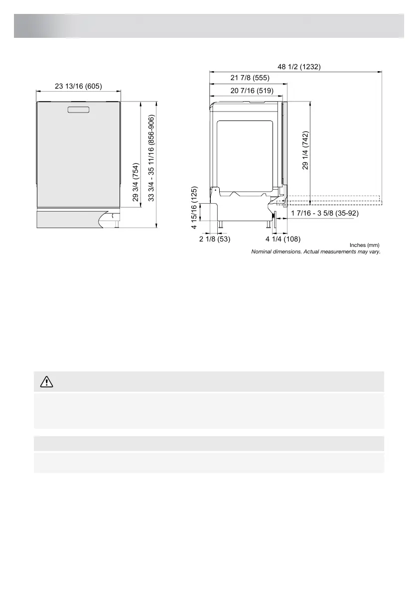 • Before fastening the dishwasher, test the dishwasher by running the Rinse and hold program.
