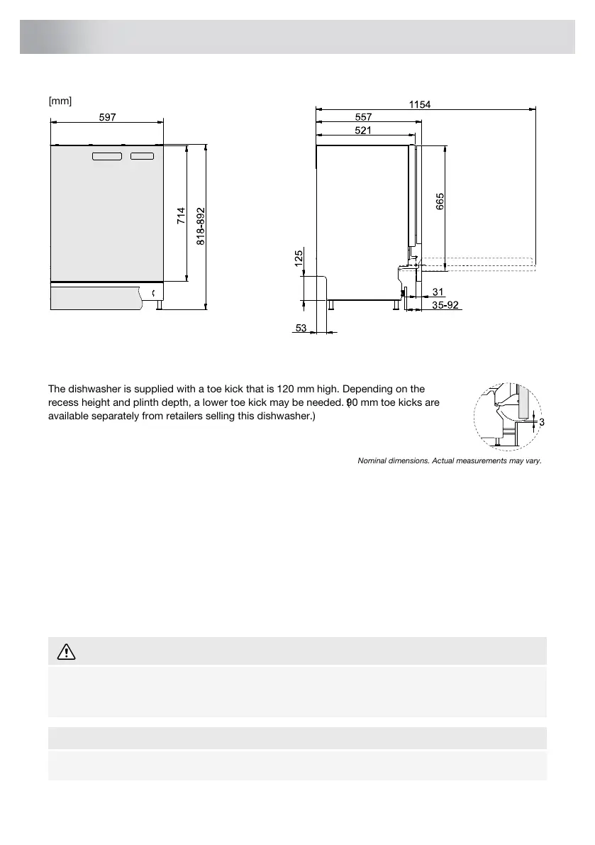 The dishwasher is supplied with a toe kick that is 120mm high. Depending on the