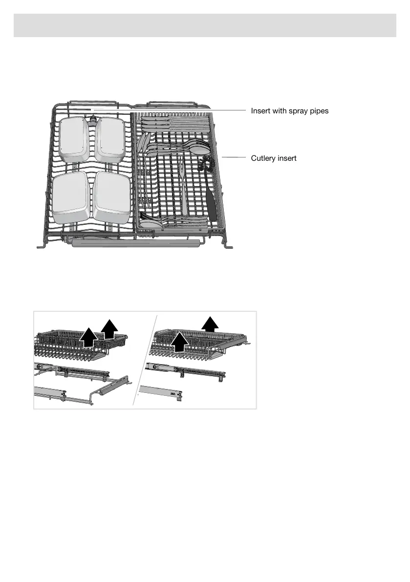 The middle basket comes with two different basket inserts. The insert with spray pipes is suitable