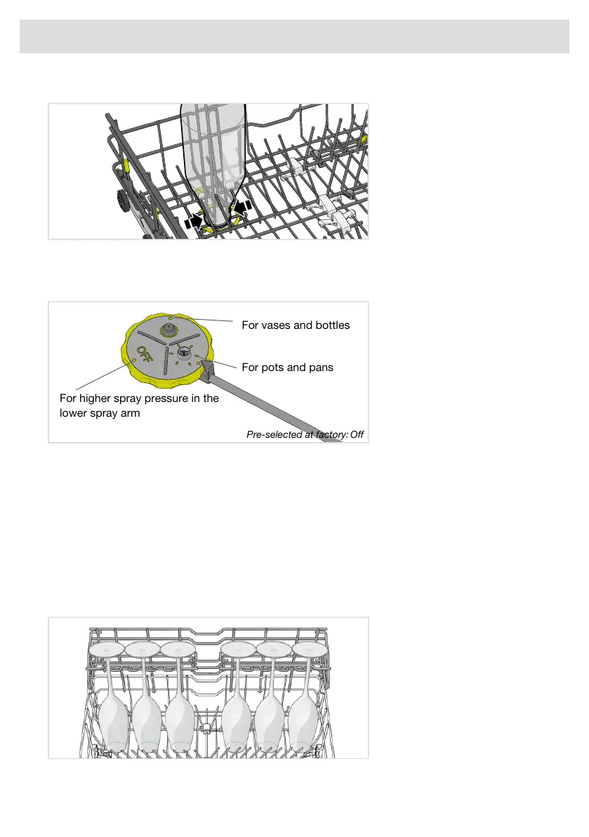 placed pots and pans or vases and bottles. Turn the dishwasher’s power zones off if you want greater