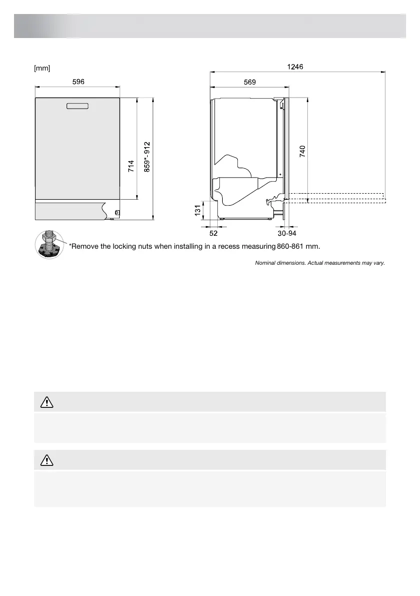 *Remove the locking nuts when installing in a recess measuring 860-861 mm.