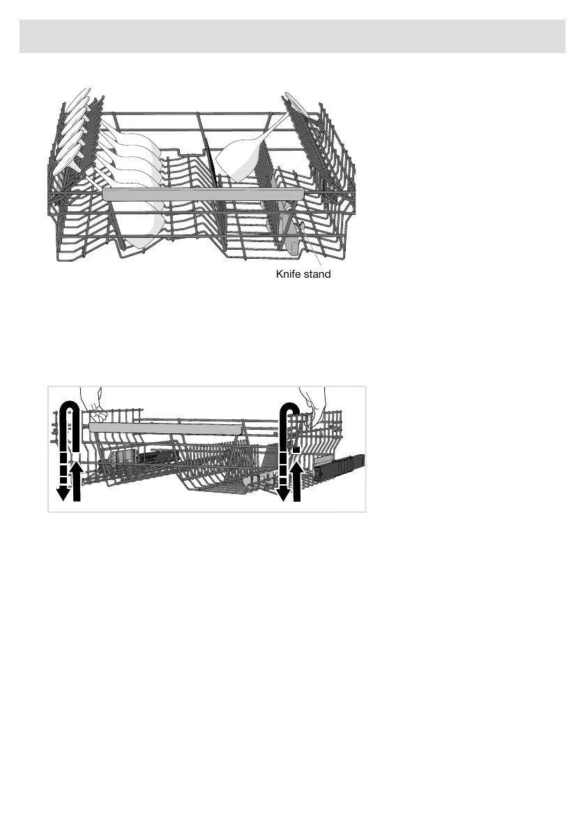 Place plates, side plates, serving dishes, pots, and cutlery (in the cutlery basket) in the lower basket.